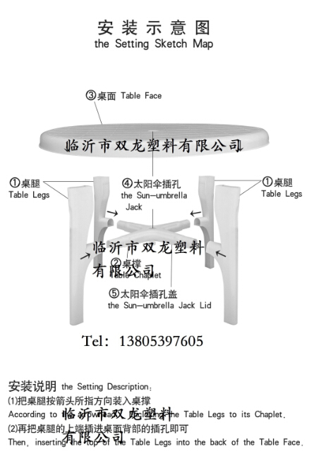 關(guān)于拼裝通過(guò)下面的示意圖可以看出基本的步驟。實(shí)際操作中首先是桌腿與桌撐的組合,通過(guò)預(yù)留的卡槽,首先手持桌撐將桌腿卡入,一次重復(fù)四次將四條桌腿安裝完畢。然后將桌面反向放置于平整地面,將組合好的桌腿與桌撐,對(duì)準(zhǔn)卡槽,推入四條桌腿,這樣一個(gè)完整的塑料桌子就組裝好了。拆卸過(guò)程同樣簡(jiǎn)單,指示把上述流程反向操作即可。